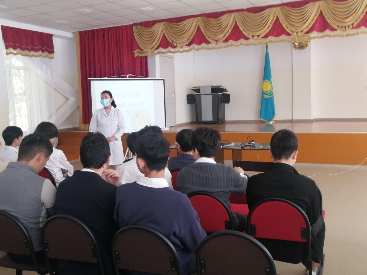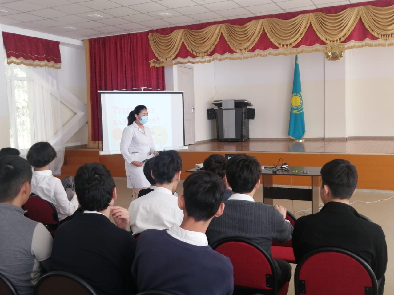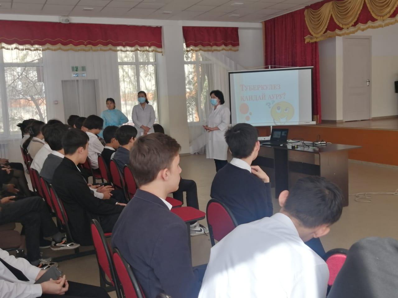 02 мамыр 2022 0 1 2 3 4 5 ПРОФИЛАКТИКАЛЫҚ ДӘРІС №40 жалпы білім беретін мектептің 9-11 сынып оқушыларына Туберкулездің алдын алуға байланысты профилактикалық дәріс оқылды. Дәрісті оқыған № 4 емхананың дәрігері Ұлбосын Мухамедияровна.#40жббм#дәріс