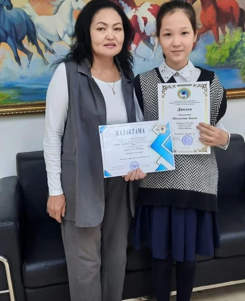 "ҚЫЗҒАЛДАҚ" БАЙҚАУЫ МЕН "ЛИСТАЯ СТРАНИЦЫ" БАЙҚАУЫНАН 1-ОРЫН АЛҒАН МАНКУСОВА АЯГУЛЬ
