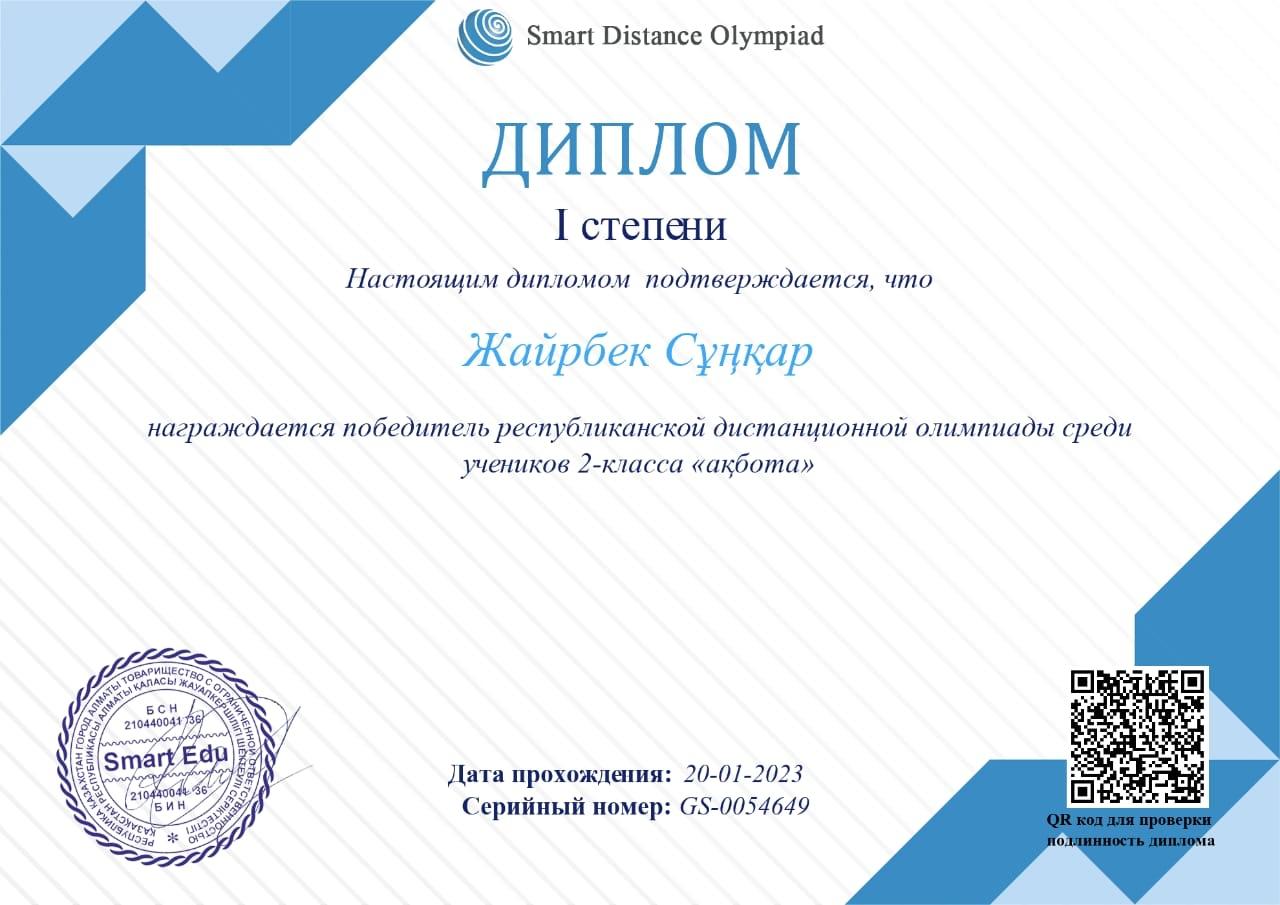 23 қаңтар 2023 0 1 2 3 4 5 "Ақбота"2-сынып оқушылары арасында өткен республикалық қашықтық олимпиадасының жеңімпазы атанды! Мектебіміздің оқушысы Жайрбек Сұңқар"Ақбота"2-сынып оқушылары арасында өткен республикалық қашықтық олимпиадасының жеңімпазы атанды!Құттықтаймыз!!!
