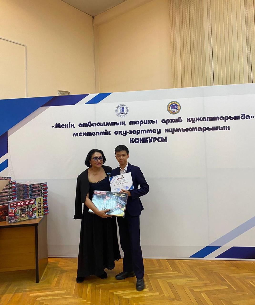 Қазақстан Республикасы Президентінің Архиві «Менің отбасымның тарихы архив құжаттарында» мектептік оқу-зерттеу жұмыстарының байқауының қорытындысы бойынша Кенжебаев Марғұлан "Шығармашылық шеберлігі үшін" номинациясын иеленді. Құттықтаймыз!!!