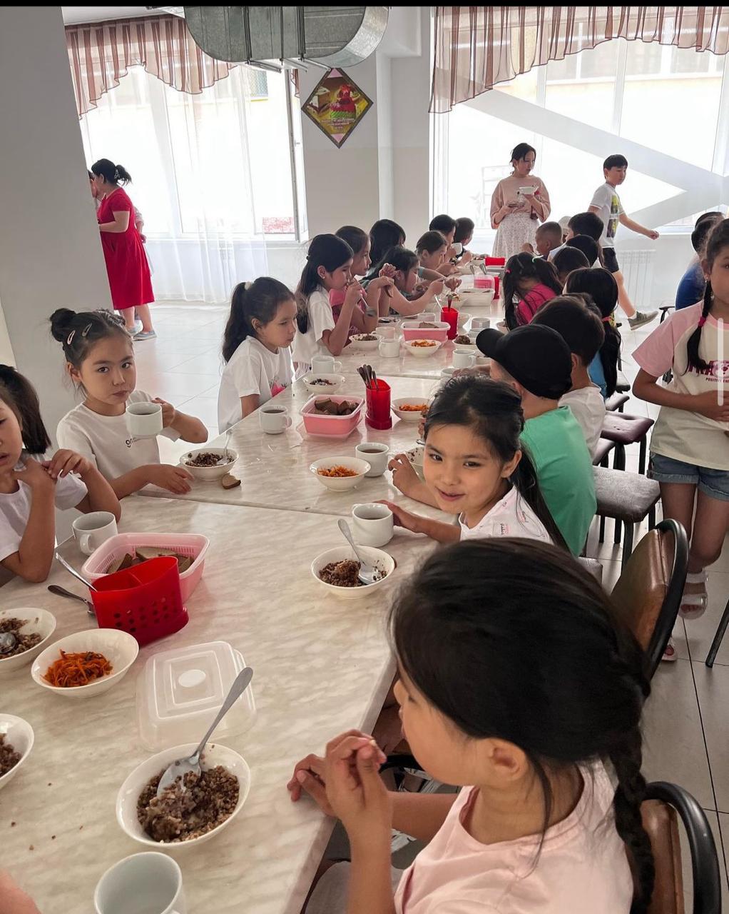 07 маусым 2023 0 1 2 3 4 5 “Балдырған” мектеп жанындағы лагердегі оқушыларымыздың асханаға барып түскі уақытта тамақтануы
