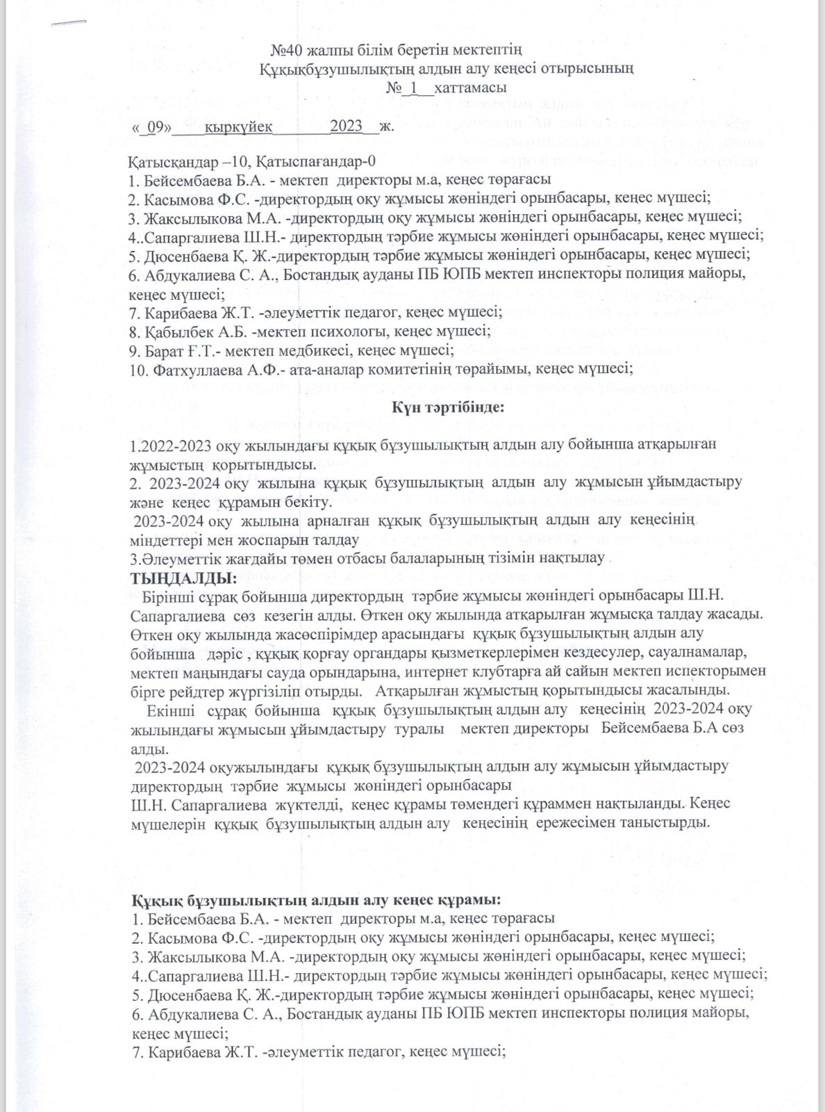 18.04.2023ж. Мектебімде 1-11 сыныптар арасында “Жасөспірімдер арасындағы құқық бұзушылықтың алдын алу”( буллинг, кибербуллинг, суицидтің алдын алу) тақырыбында тәрбие сағаттары өткізілді.