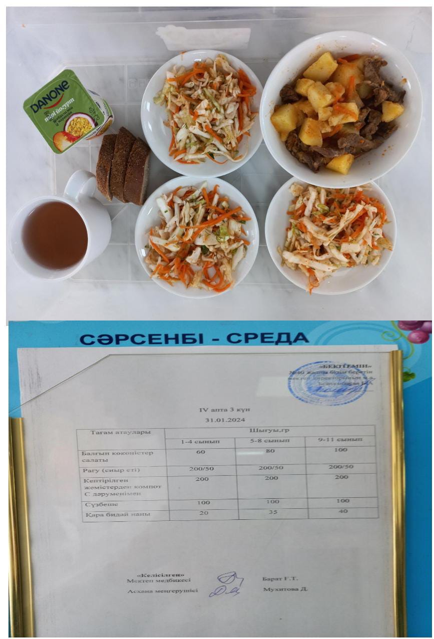 1-күндік ас мәзірі ІІІ апта 4 күн