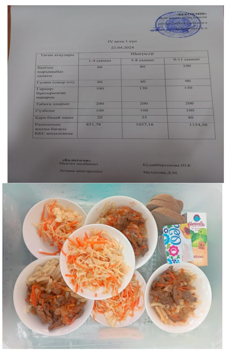 » 1 күндік ас мәзірі IV аптпа 1 күн