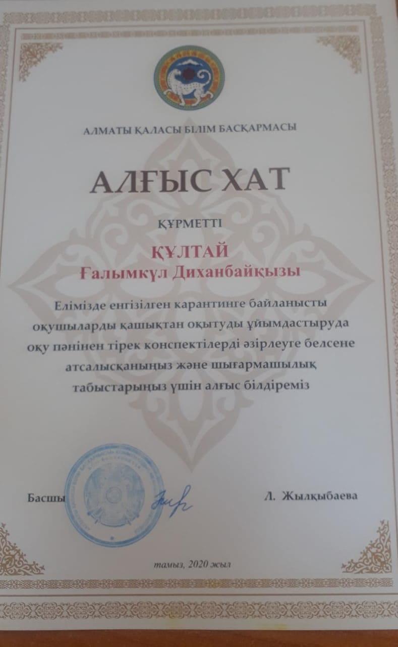 Ғалымгүл апаймыздың қала көлеміндегі еңбегі еленуде!!!