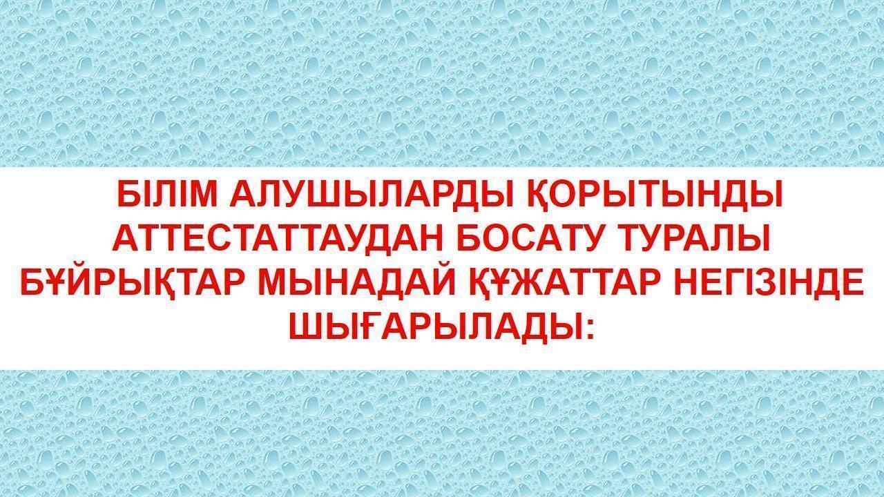«ОРТА, ТЕХНИКАЛЫҚ ЖӘНЕ КӘСІПТІК, ОРТА БІЛІМНЕН КЕЙІНГІ БІЛІМ БЕРУ ҰЙЫМДАРЫ ҮШІН БІЛІМ АЛУШЫЛАРДЫҢ ҮЛГЕРІМІНЕ АҒЫМДАҒЫ БАҚЫЛАУДЫ, ОЛАРДЫ АРАЛЫҚ ЖӘНЕ ҚОРЫТЫНДЫ АТТЕСТАТТАУДЫ ӨТКІЗУДІҢ ТӘРТІПТЕРІ»