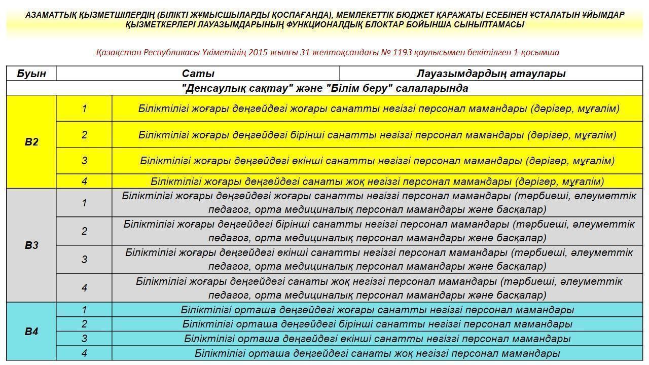 Школа №40 » МЕКТЕП » АЗАМАТТЫҚ ҚЫЗМЕТШІЛЕРДІҢ (БІЛІКТІ ЖҰМЫСШЫЛАРДЫ ҚОСПАҒАНДА), МЕМЛЕКЕТТІК БЮДЖЕТ ҚАРАЖАТЫ ЕСЕБІНЕН ҰСТАЛАТЫН ҰЙЫМДАР ҚЫЗМЕТКЕРЛЕРІ ЛАУАЗЫМДАРЫНЫҢ ФУНКЦИОНАЛДЫҚ БЛОКТАР БОЙЫНША СЫНЫПТАМАСЫ