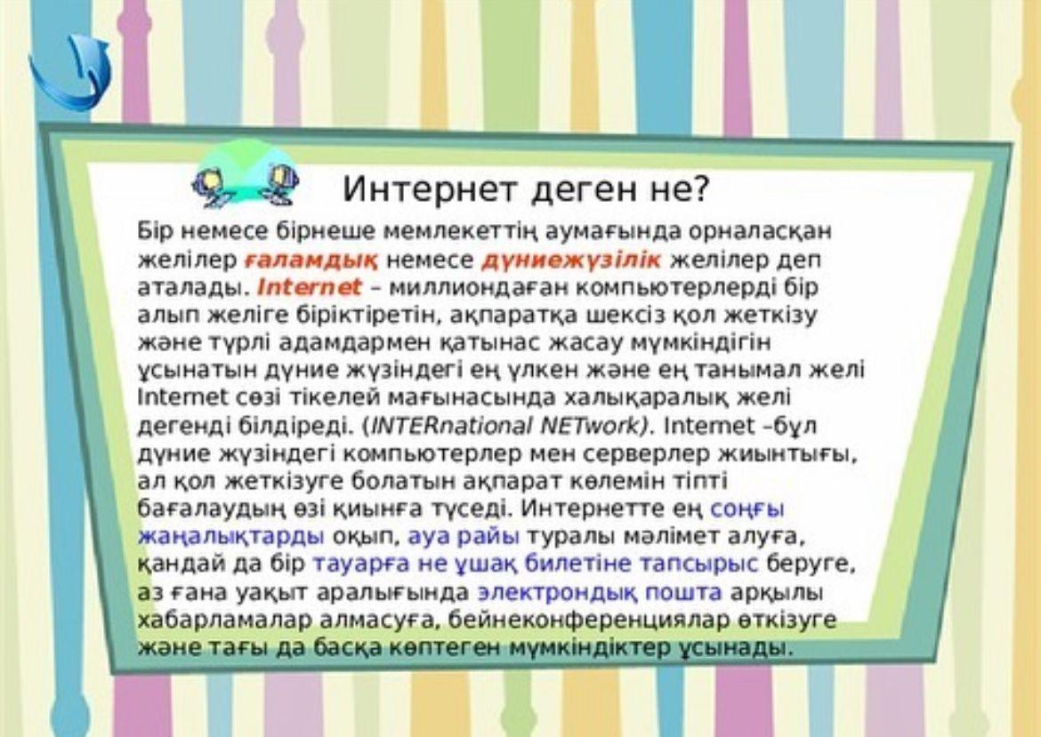 4- сәуір Халықаралық ғаламтор күні. Заман талабына сай ғаламтордың қазіргі адам өмірінде алар орыны ерекше. Осыған орай мектебімізде 7-11 сынып оқушыларымен "Қауіпсіз интернет" тақырыбында сынып сағаттары және ата-аналарға түсіндірме жұмыстар жүргізілді!