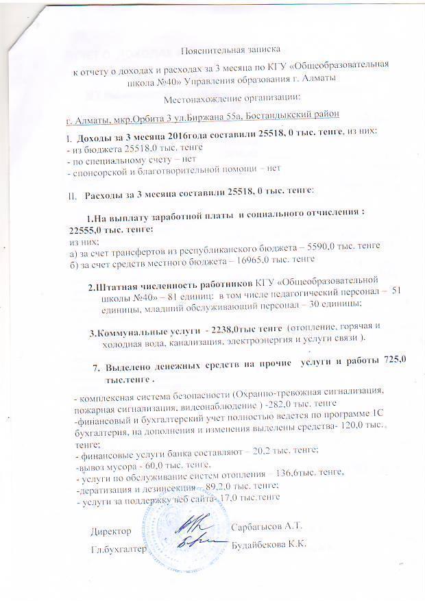 » Отчет о доходах и расходах за 1-квартал 2016 года и пояснительная записка