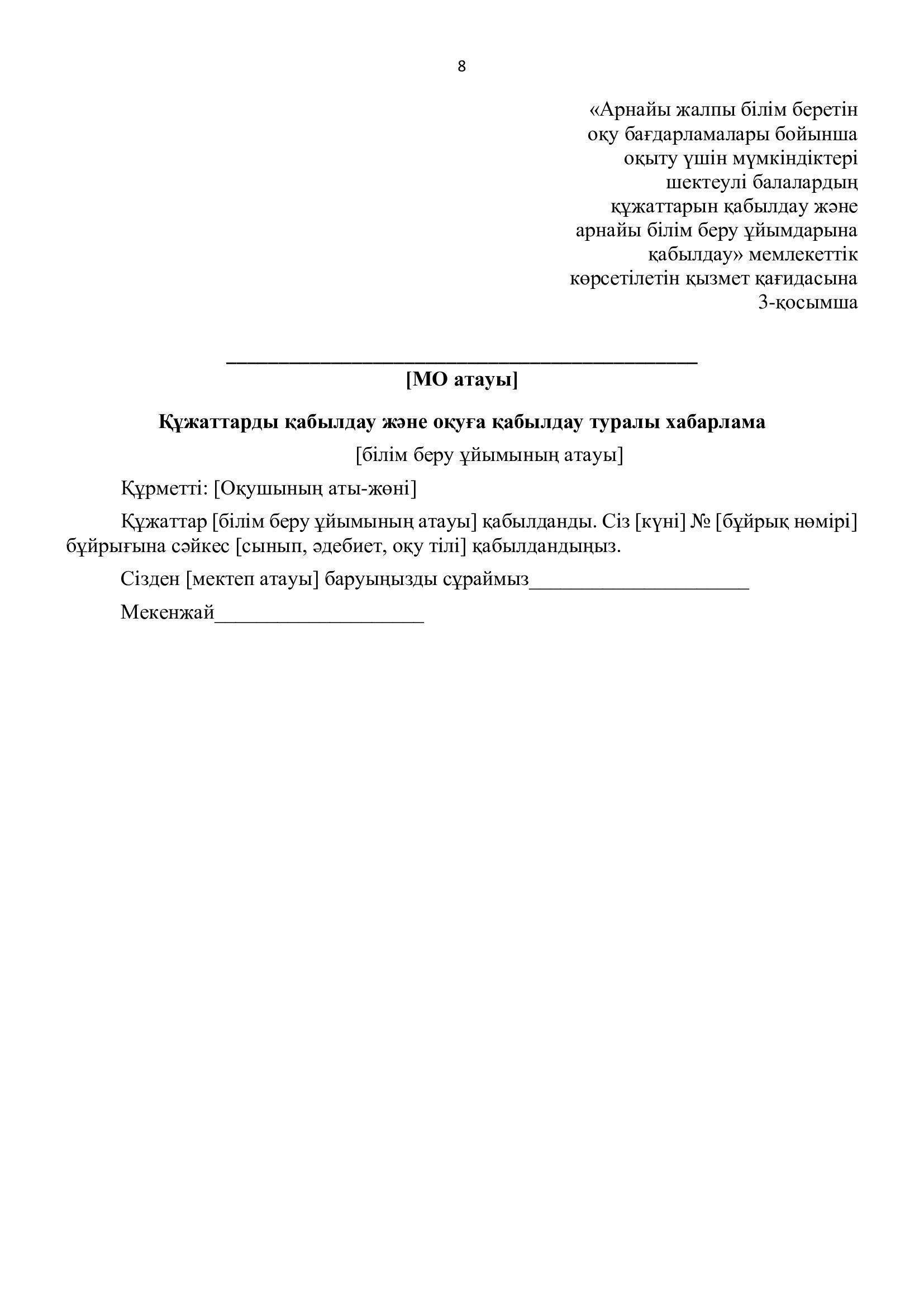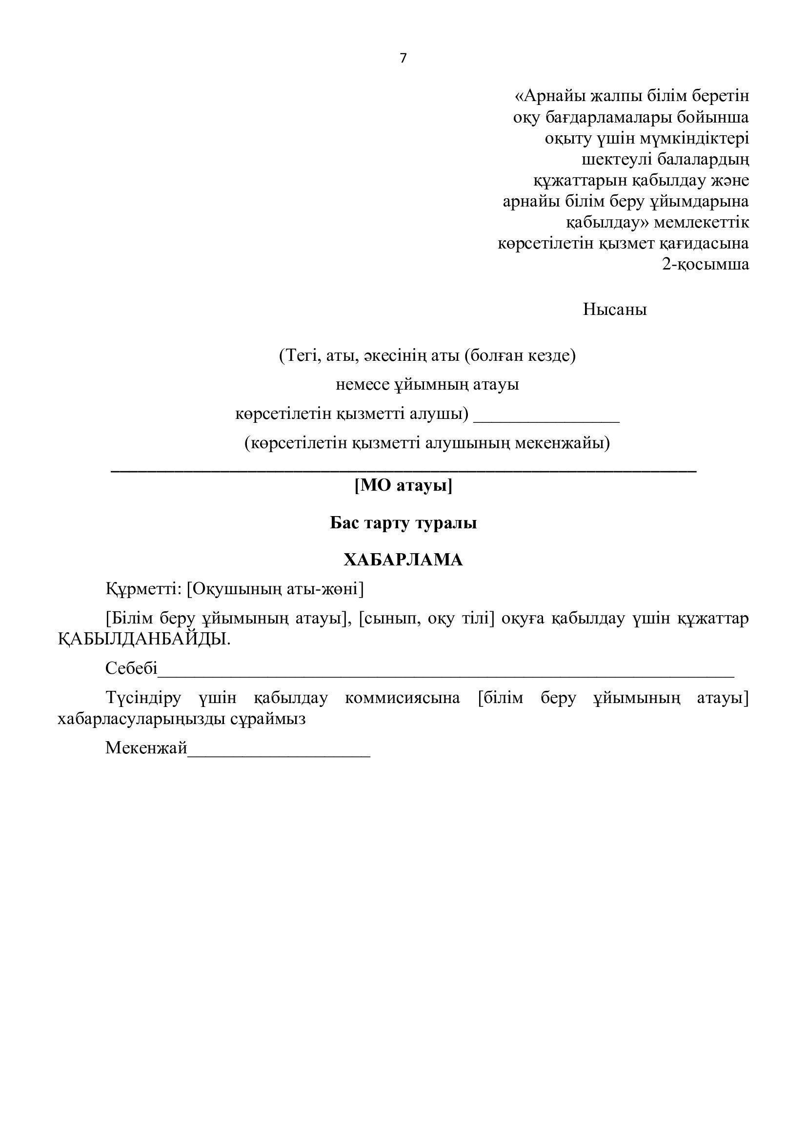 06 қаңтар 2020 0 1 2 3 4 5 Арнайы жалпы білім беретін оқу бағдарламалары бойынша оқыту үшін мүмкіндіктері шектеулі балалардың құжаттарын қабылдау және арна