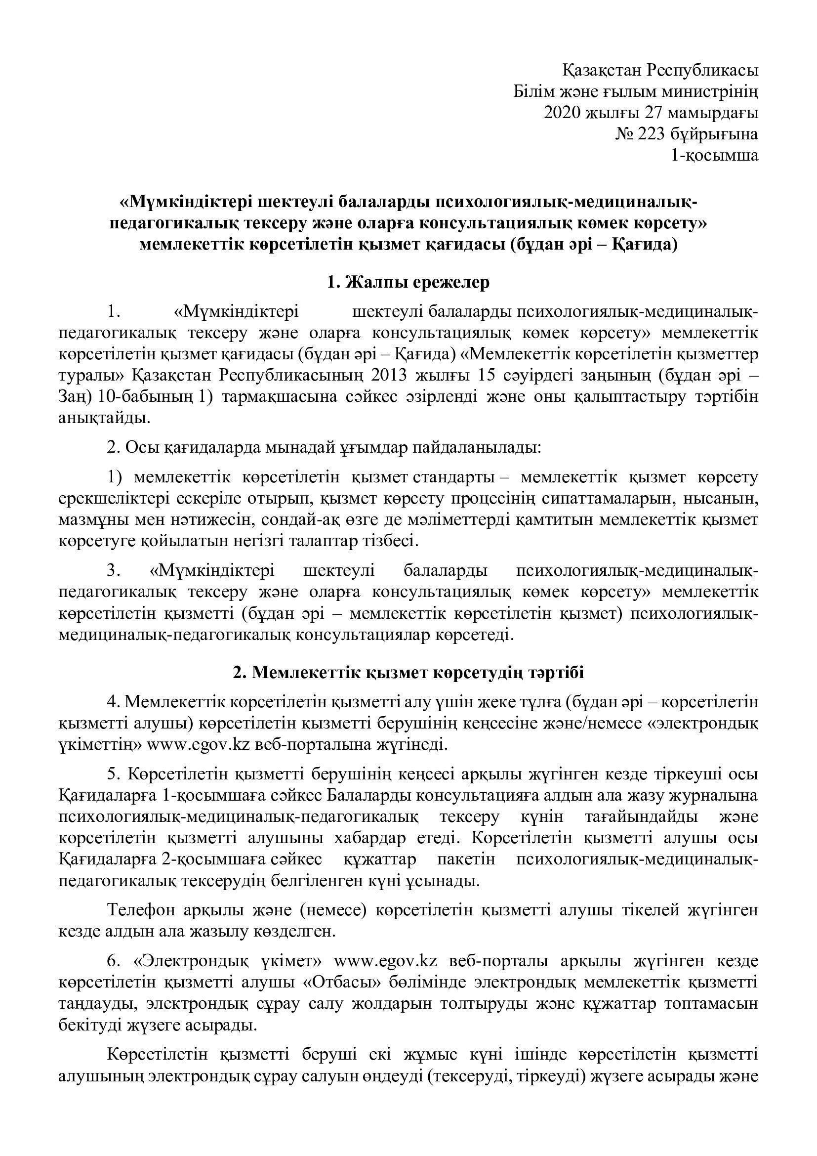17 қаңтар 2020 0 1 2 3 4 5 Мүмкіндіктері шектеулі балаларды психологиялық-медициналық-педагогикалық тексеру және оларға консультациялық көмек көрсету