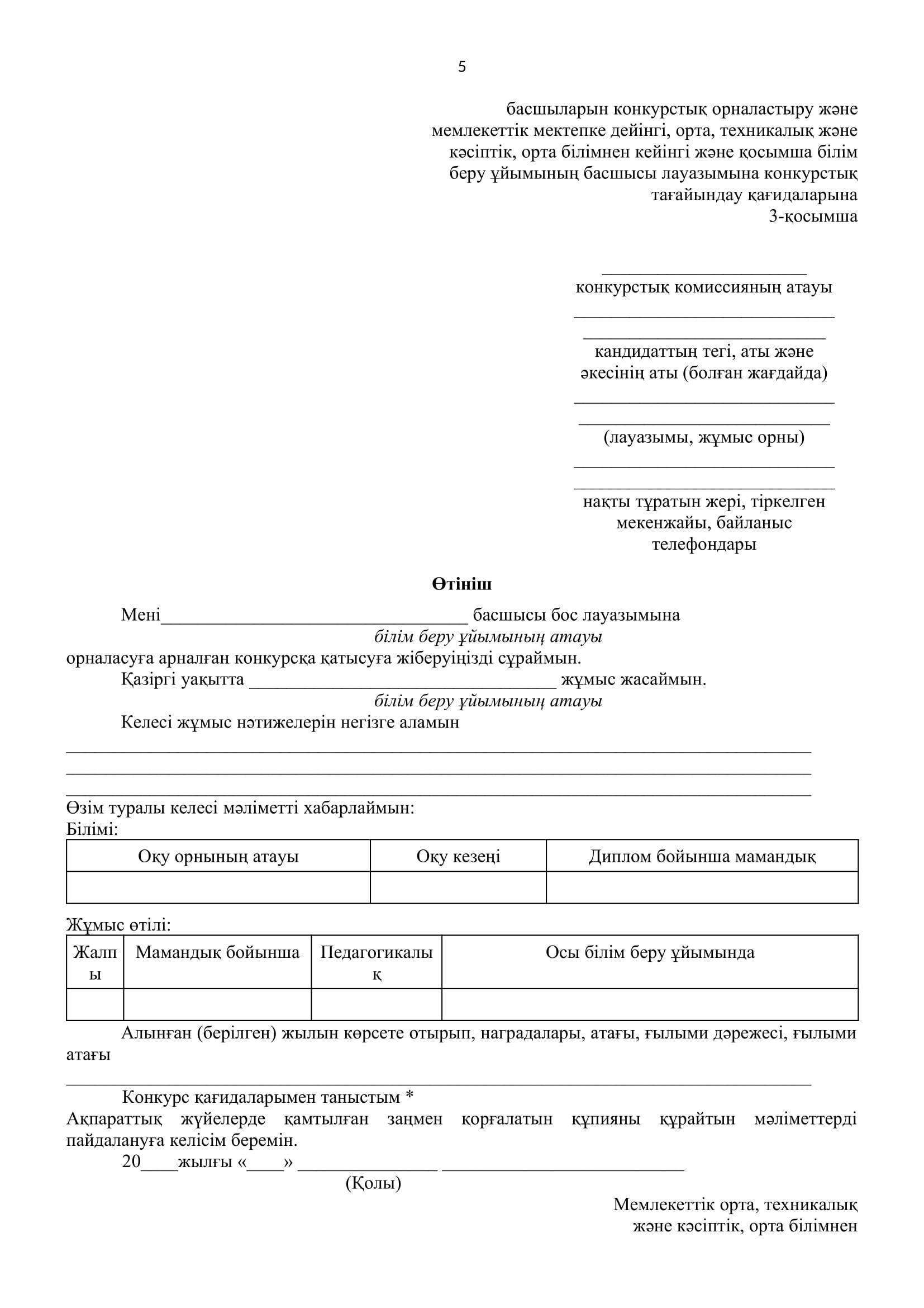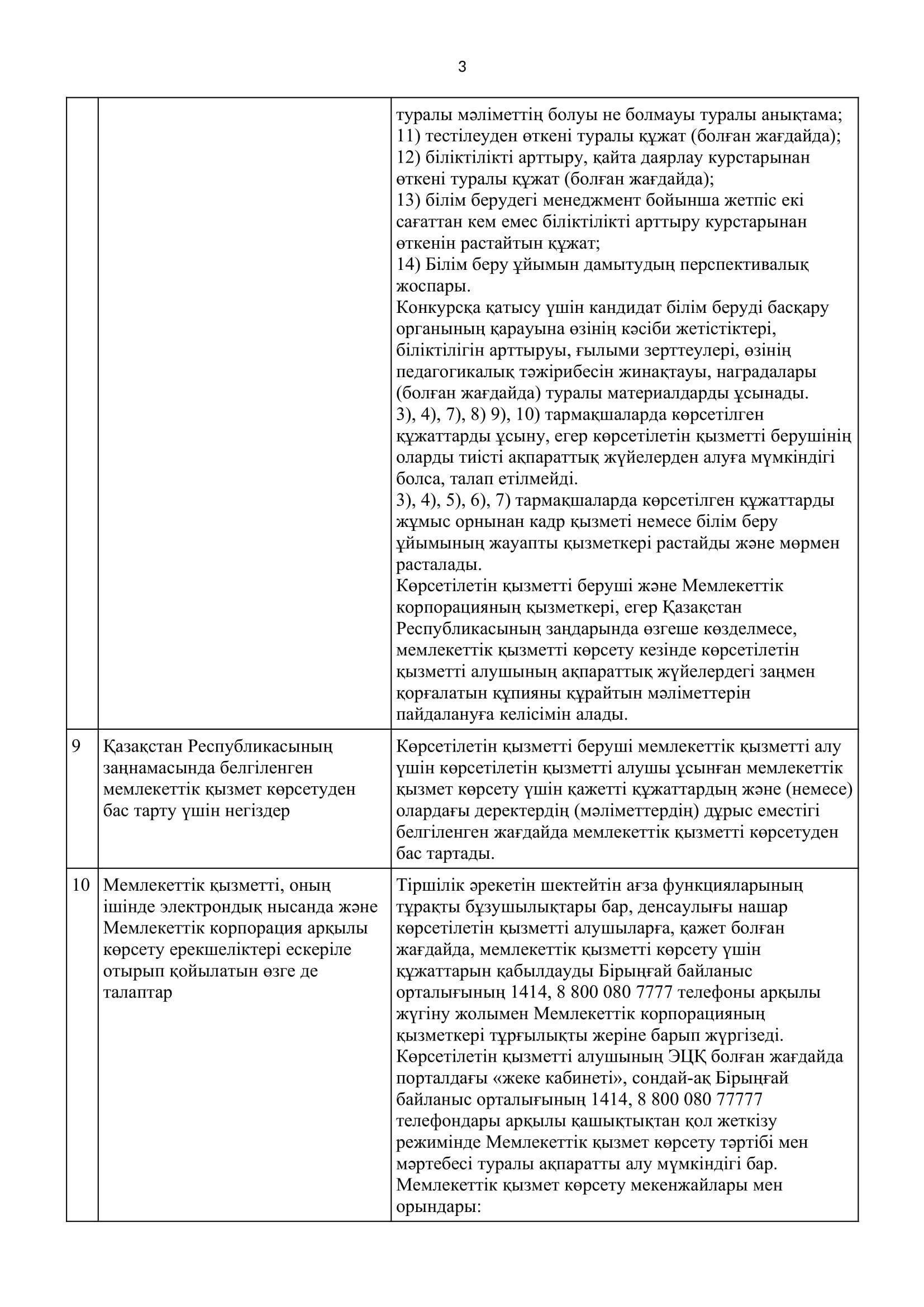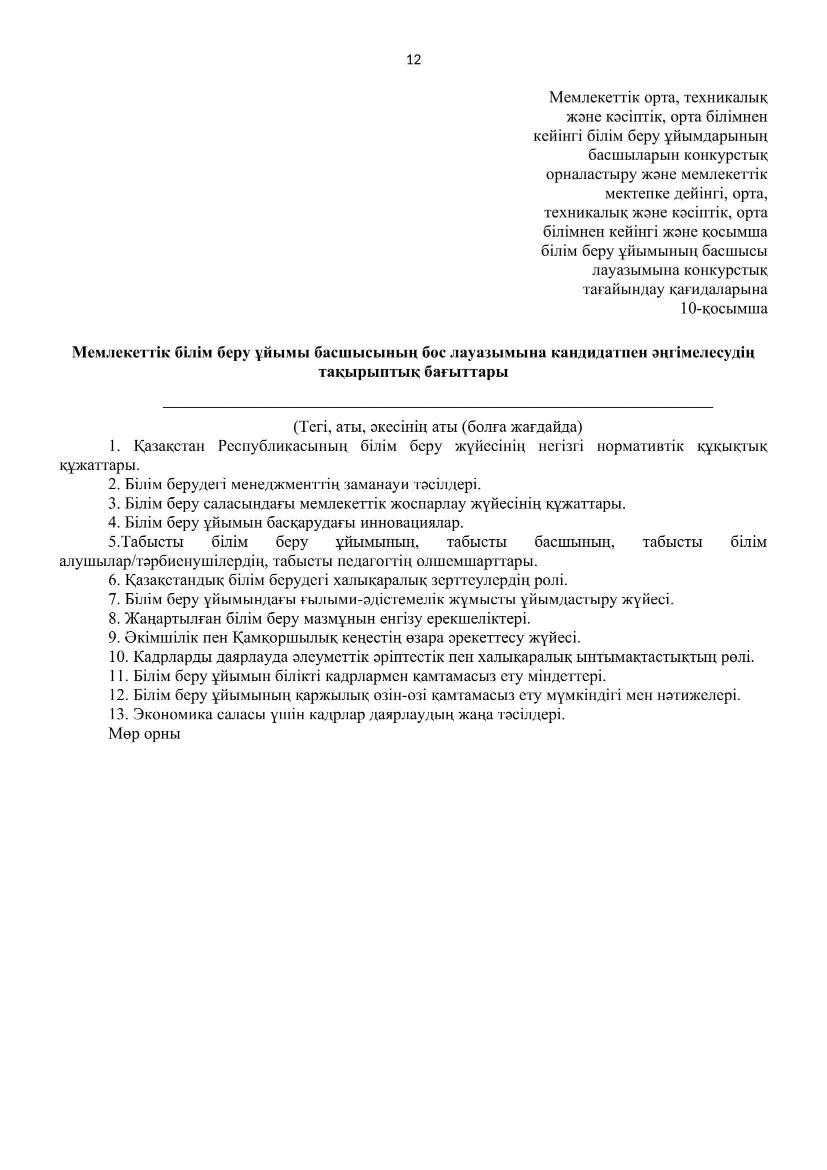 » білім беру ұйымының басшысы лауазымына конкурстық тағайындау