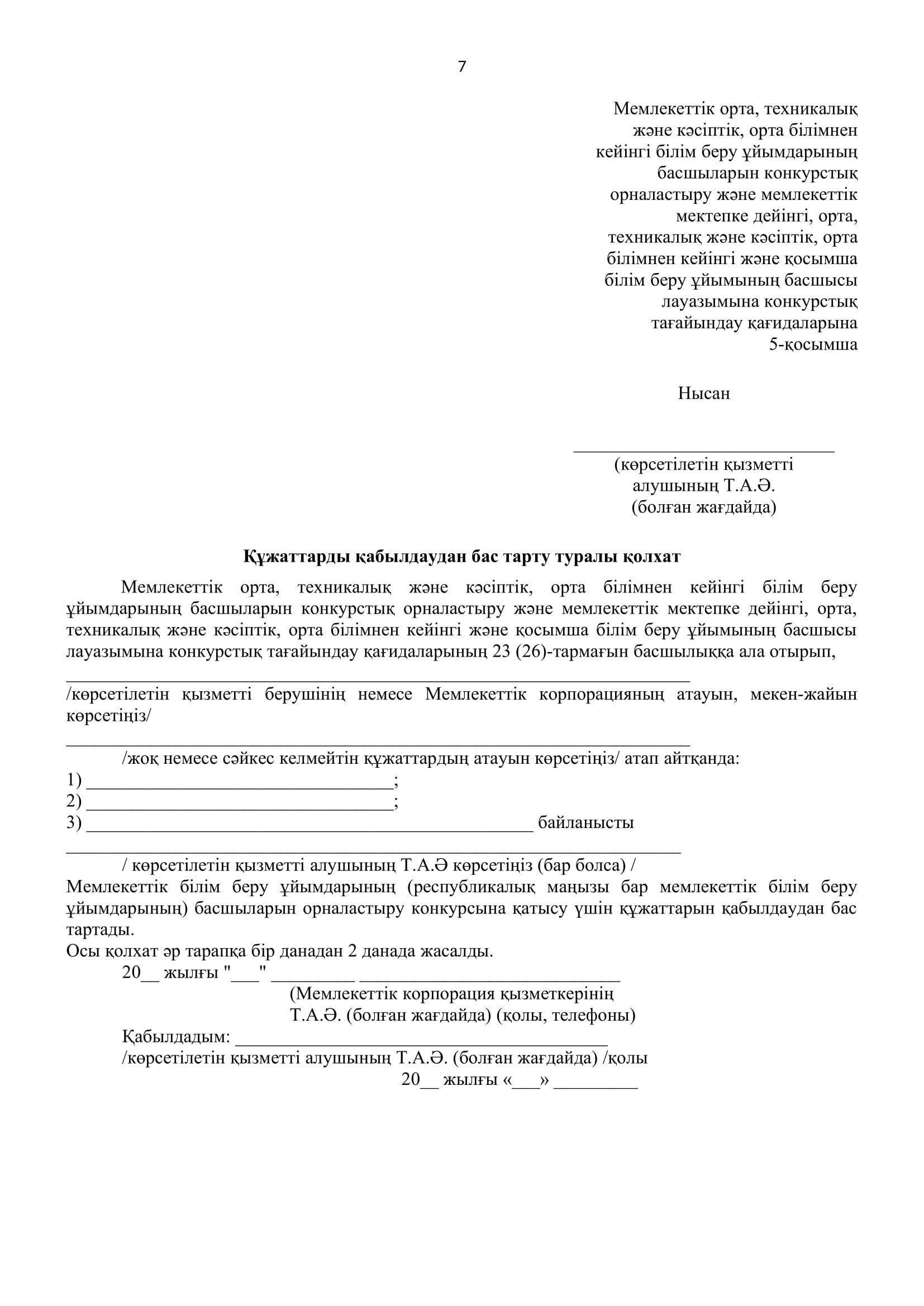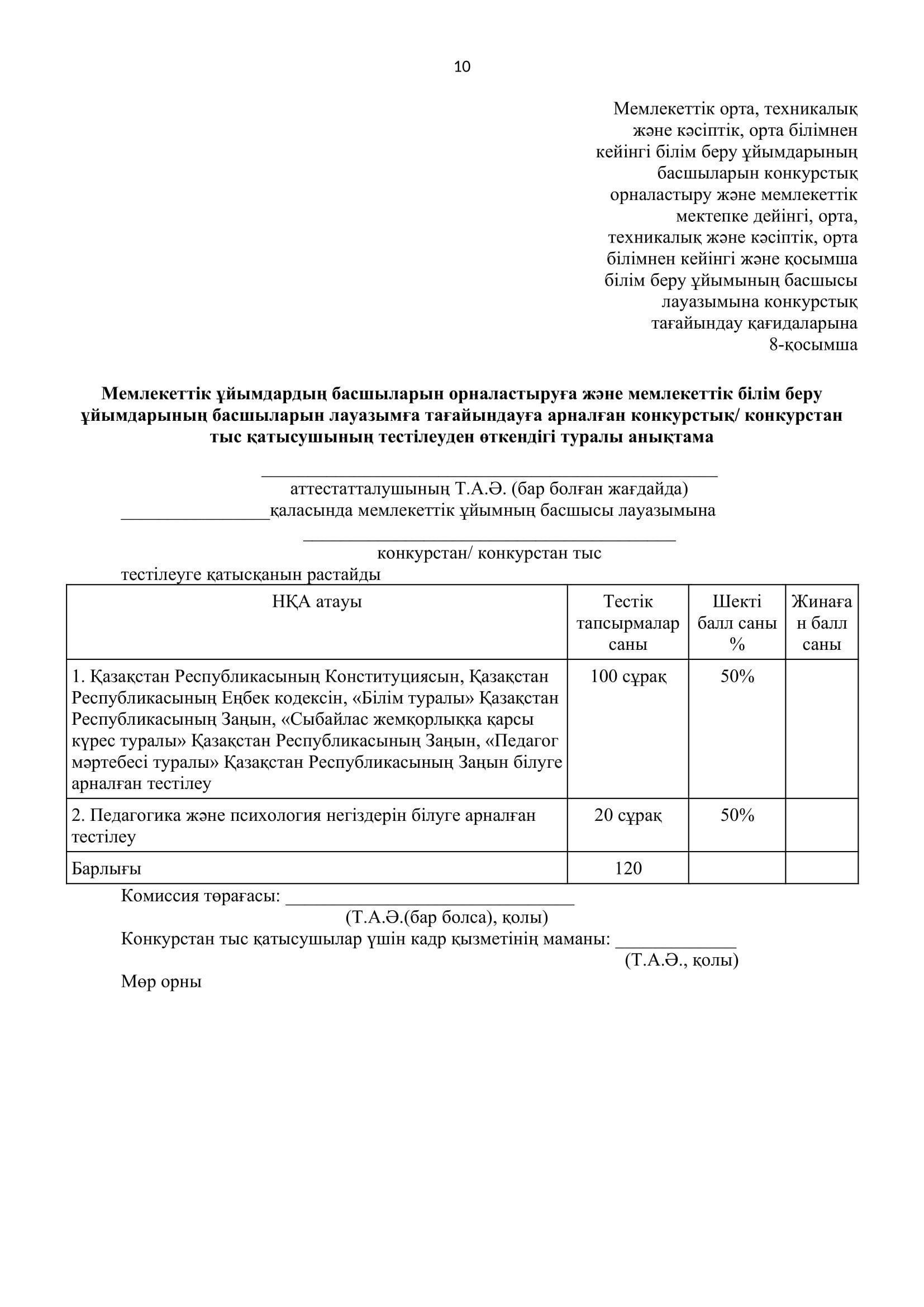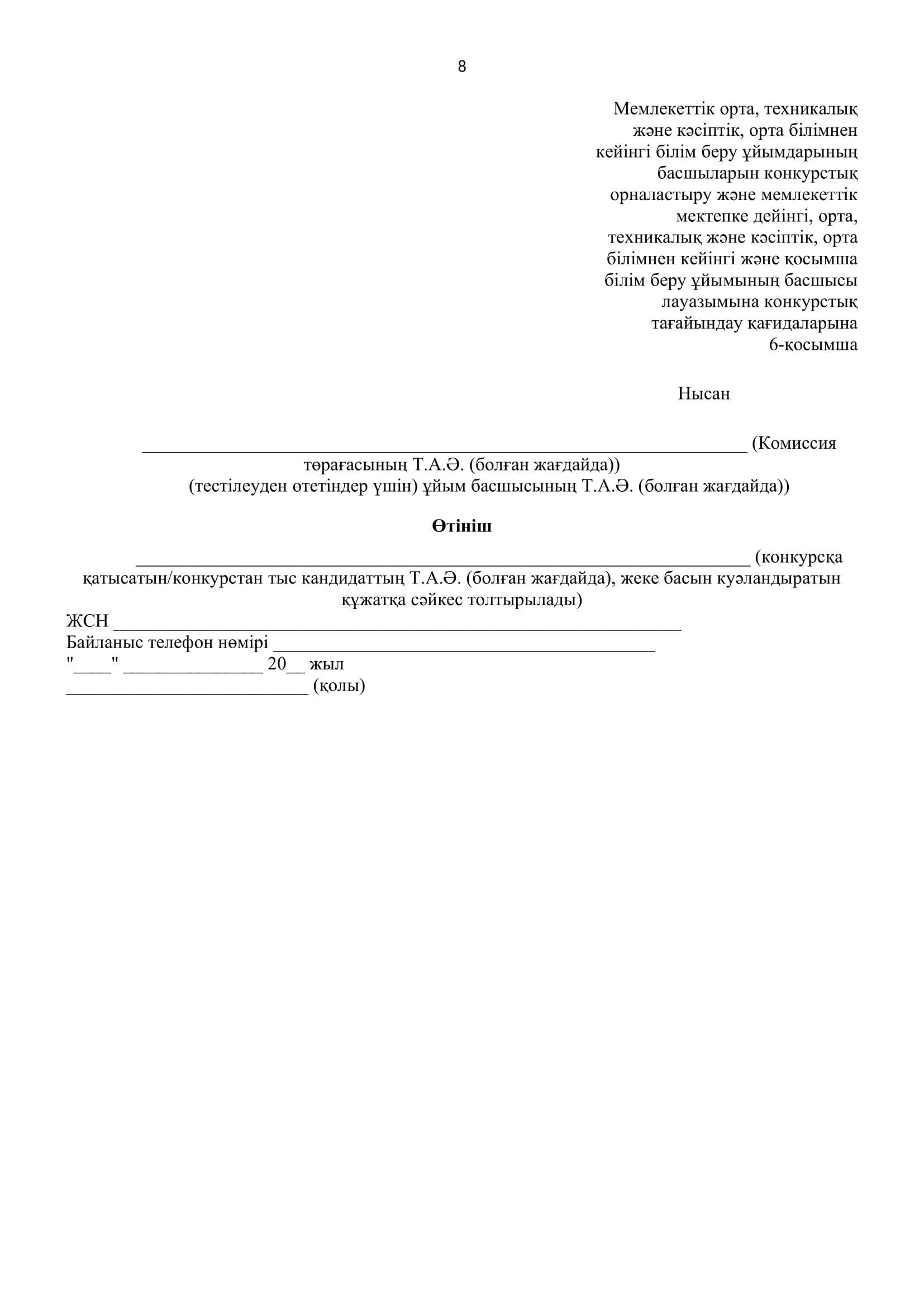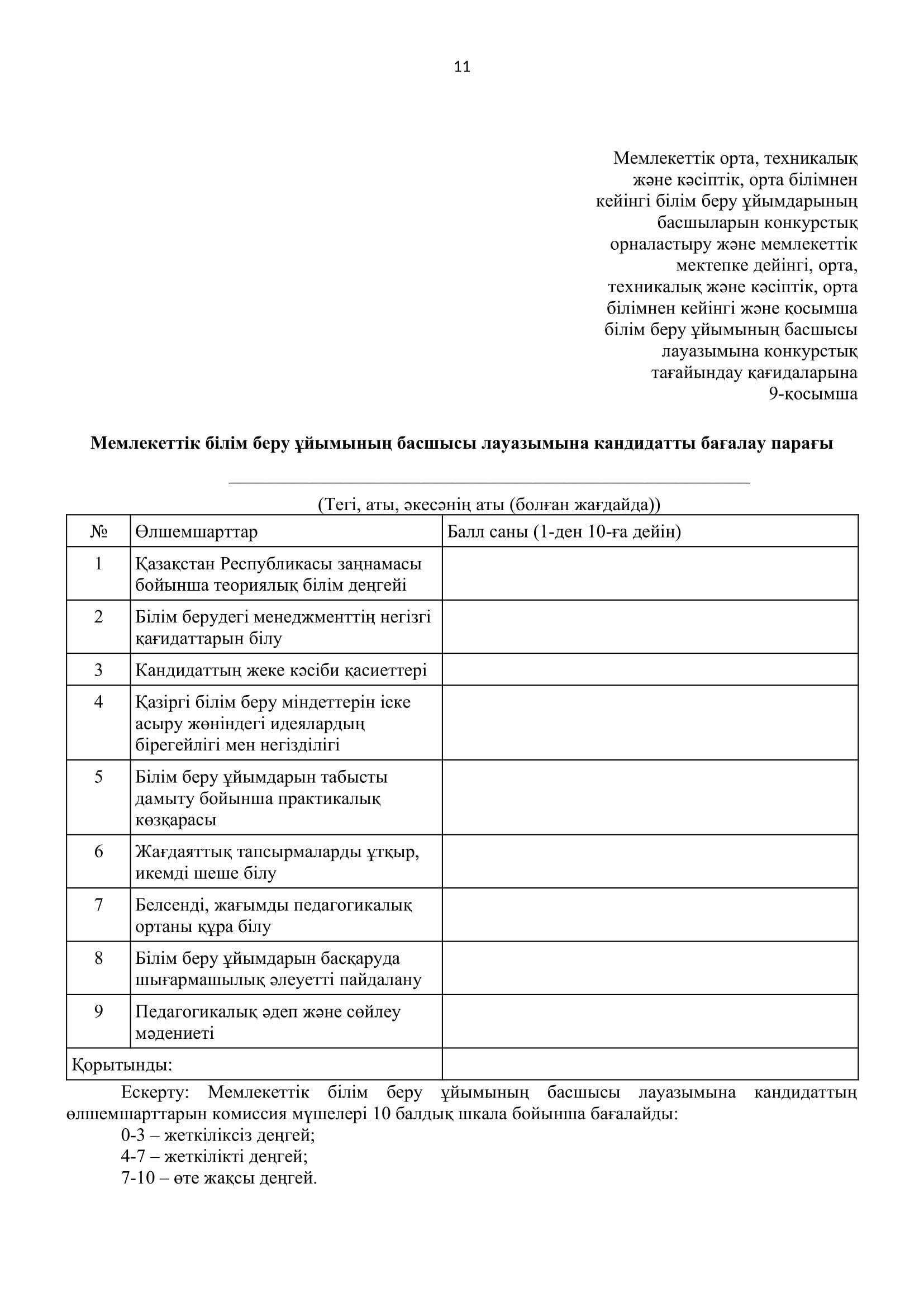 » білім беру ұйымының басшысы лауазымына конкурстық тағайындау