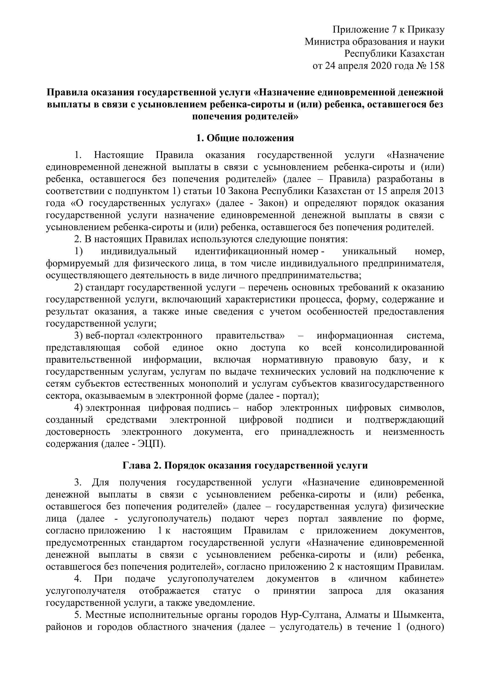 23 қаңтар 2020 0 1 2 3 4 5 Назначение единовременной денежной выплаты в связи с усыновлением ребенка-сироты и (или) ребенка, оставшегося без попечения родителей