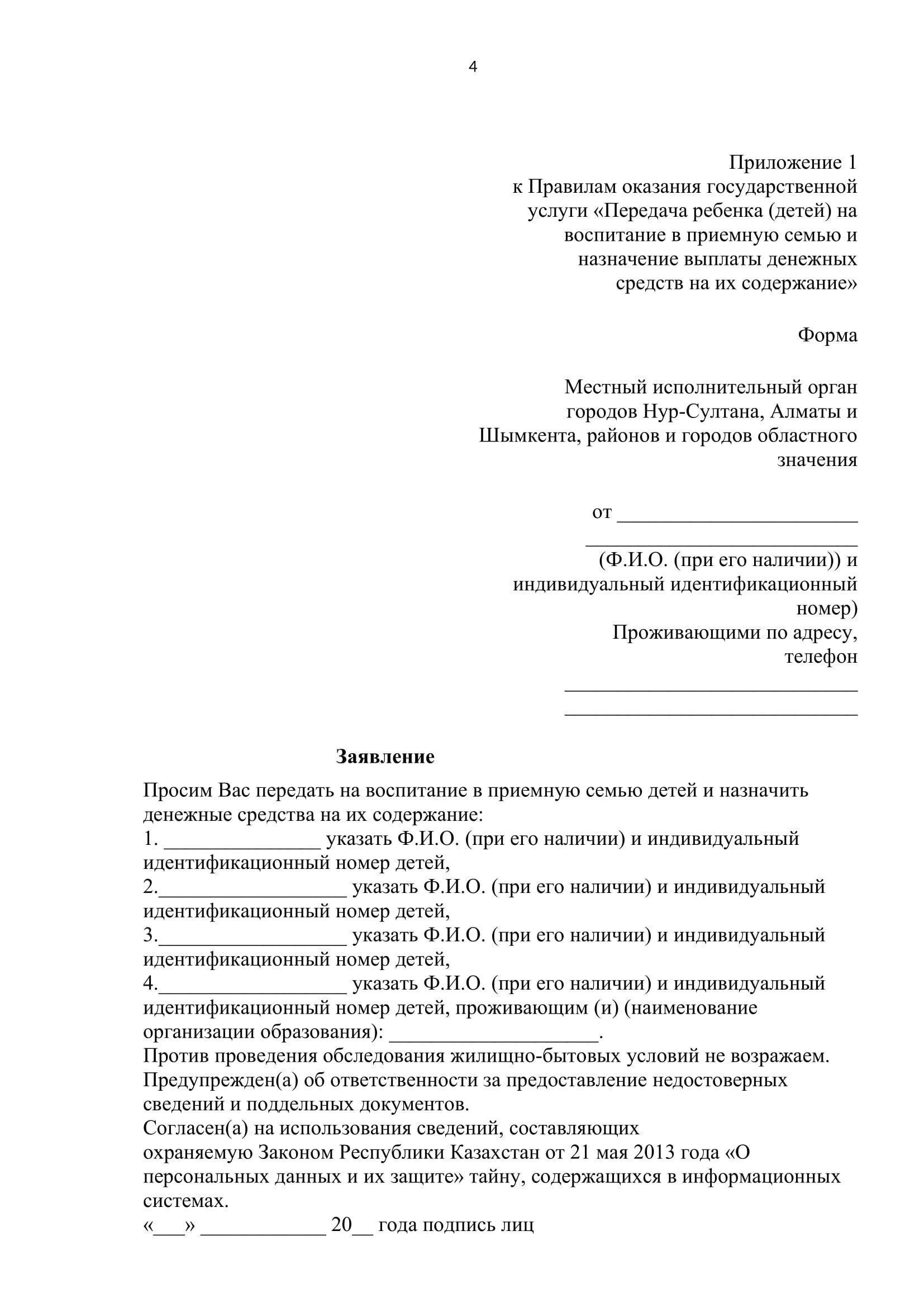 27 қаңтар 2020 0 1 2 3 4 5 Передача ребенка (детей) на воспитание в приемную семью и назначение выплаты денежных средств на их содержание