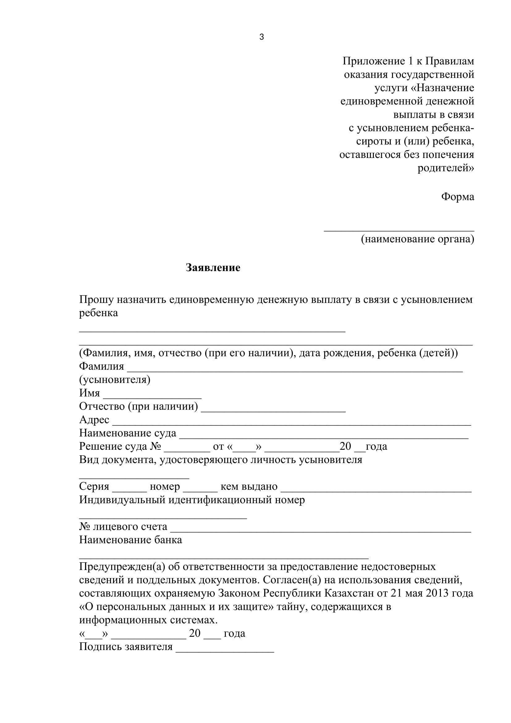 05 қыркүйек 2020 0 1 2 3 4 5 Назначение единовременной денежной выплаты в связи с усыновлением ребенка-сироты и (или) ребенка, оставшегося без попечения родителей