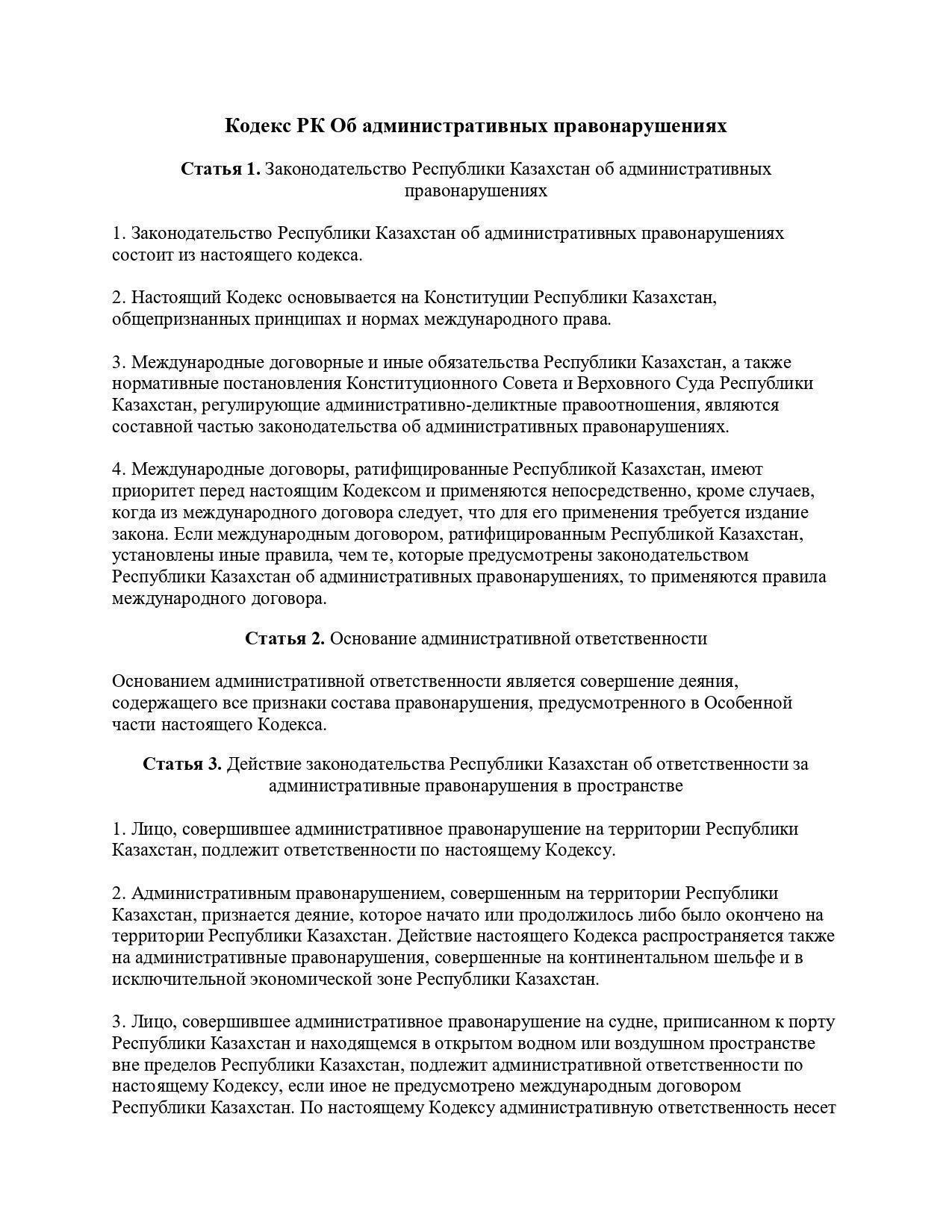 » Кодекс РК об административных правонарушениях