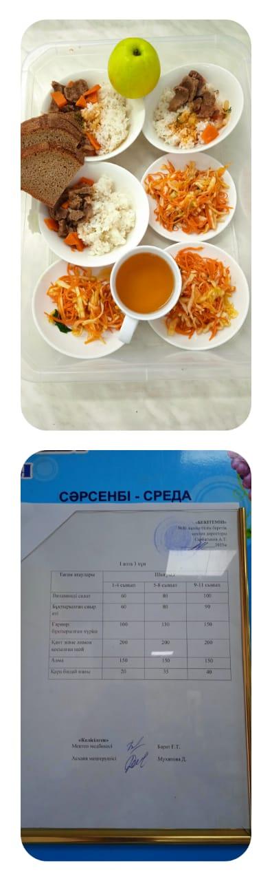 1 күндік ас мәзірі. І апта 3 күн