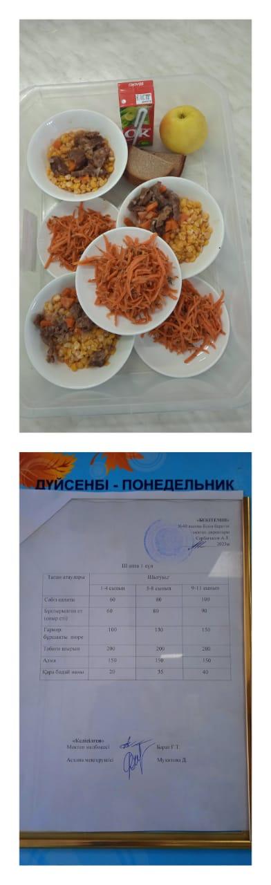 1-күндік ас мәзірі ІІІ апта 3 күн