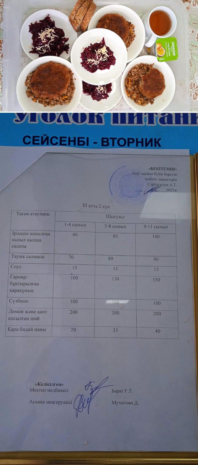 1 күндік ас мәзірі. ІІІ апта 2 күн.