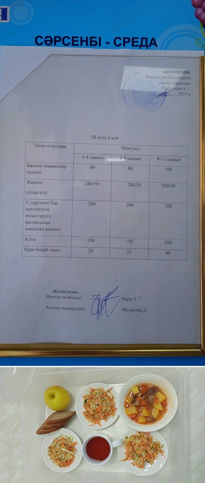 1-күндік ас мәзірі ІІІ апта 4 күн
