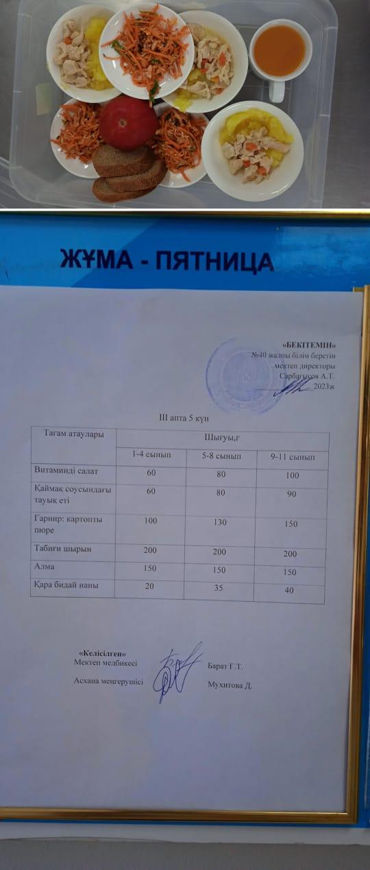 1 күндік ас мәзірі І апта 5 күн
