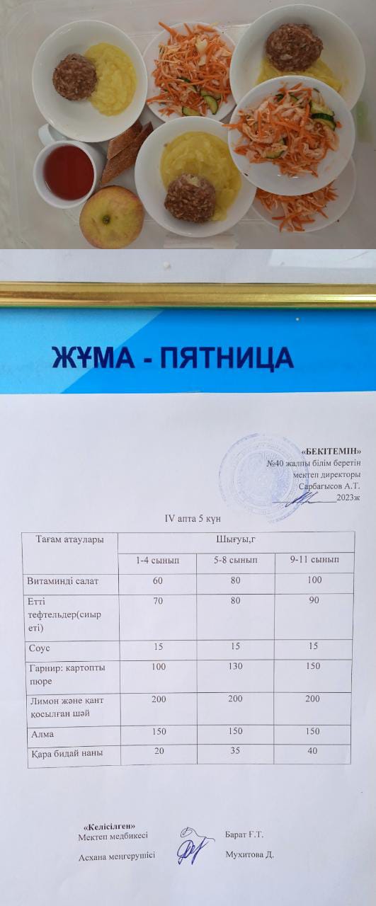 1 күндік ас мәзірі IV апта 1 күн