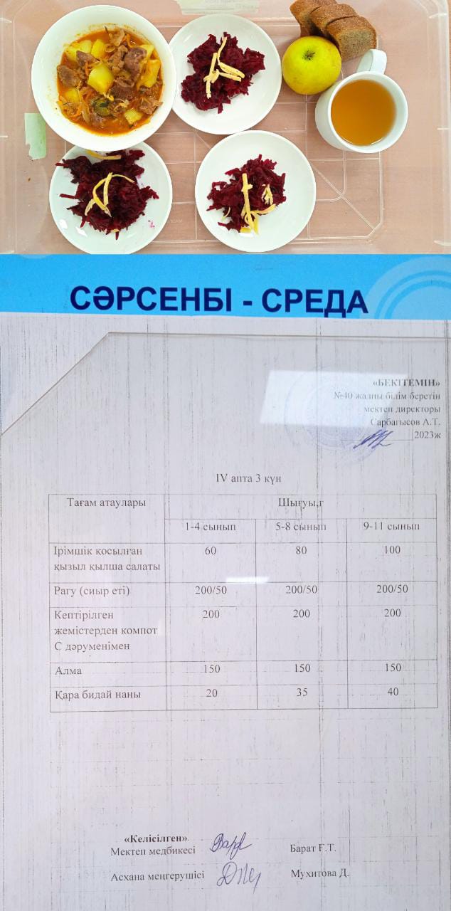 1-күндік ас мәзірі ІІІ апта 4 күн