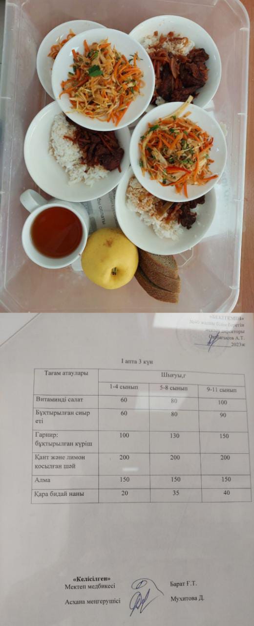 1-күндік ас мәзірі ІІІ апта 3 күн