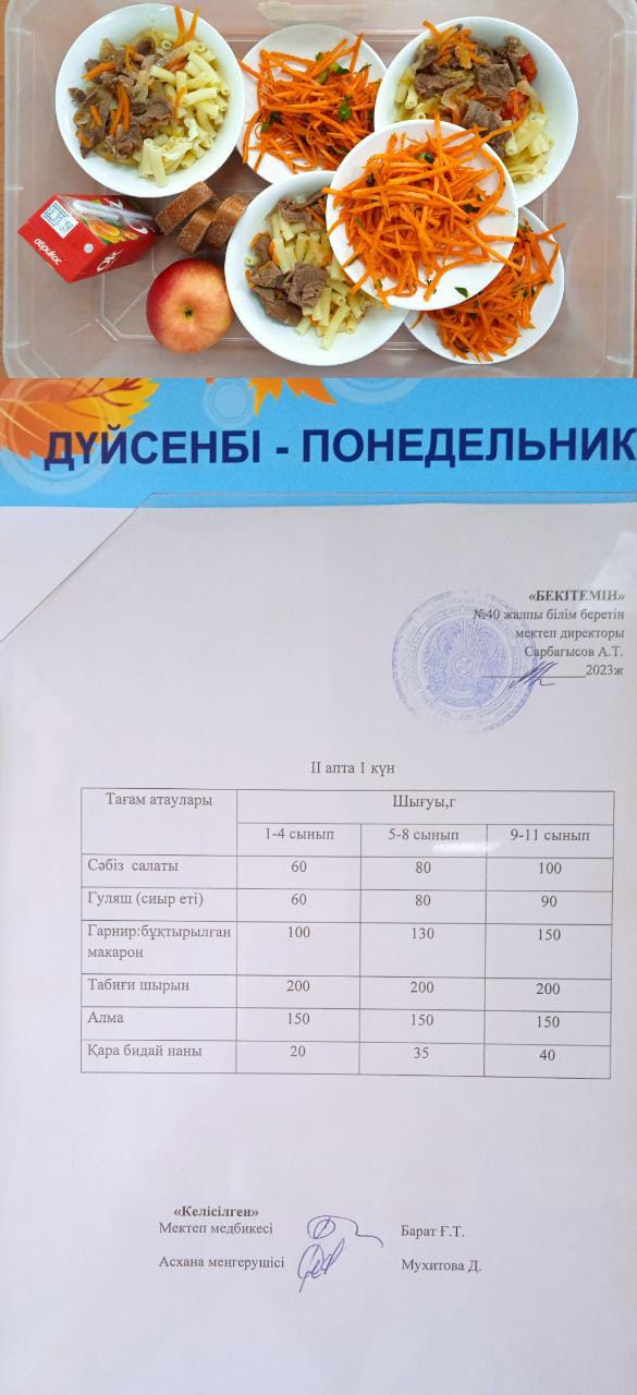 1 күндік ас мәзірі. ІІ апта 1 күн