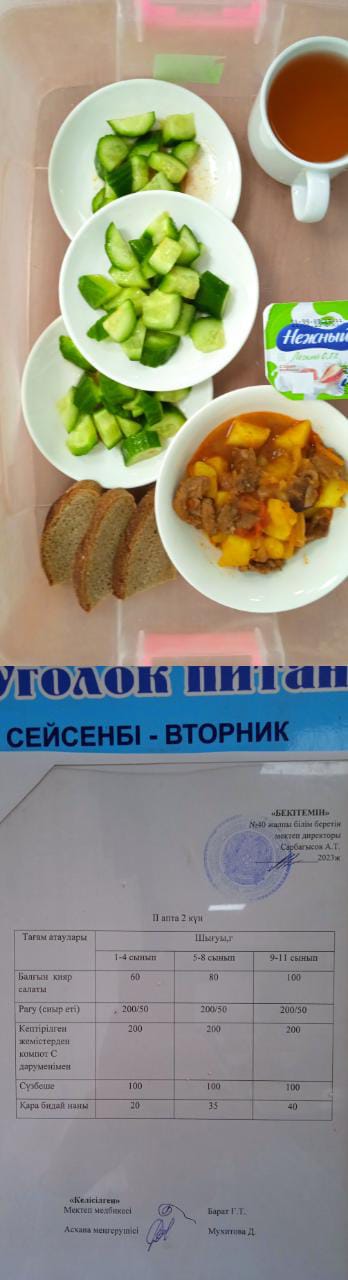 1 күндік ас мәзірі. ІІ апта 2 күн