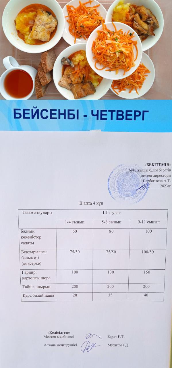 1 күндік ас мәзірі. ІІ апта 4 күн