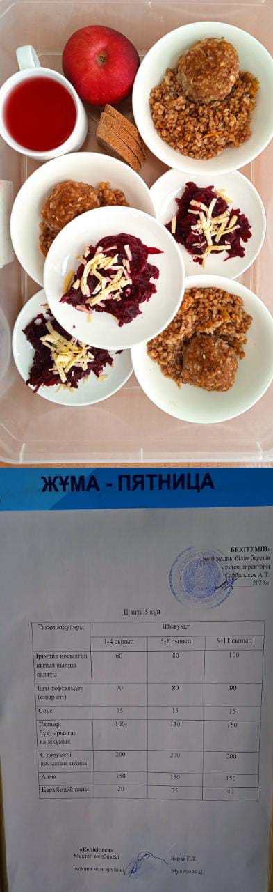 1 күндік ас мәзірі. ІІ апта 5 күн
