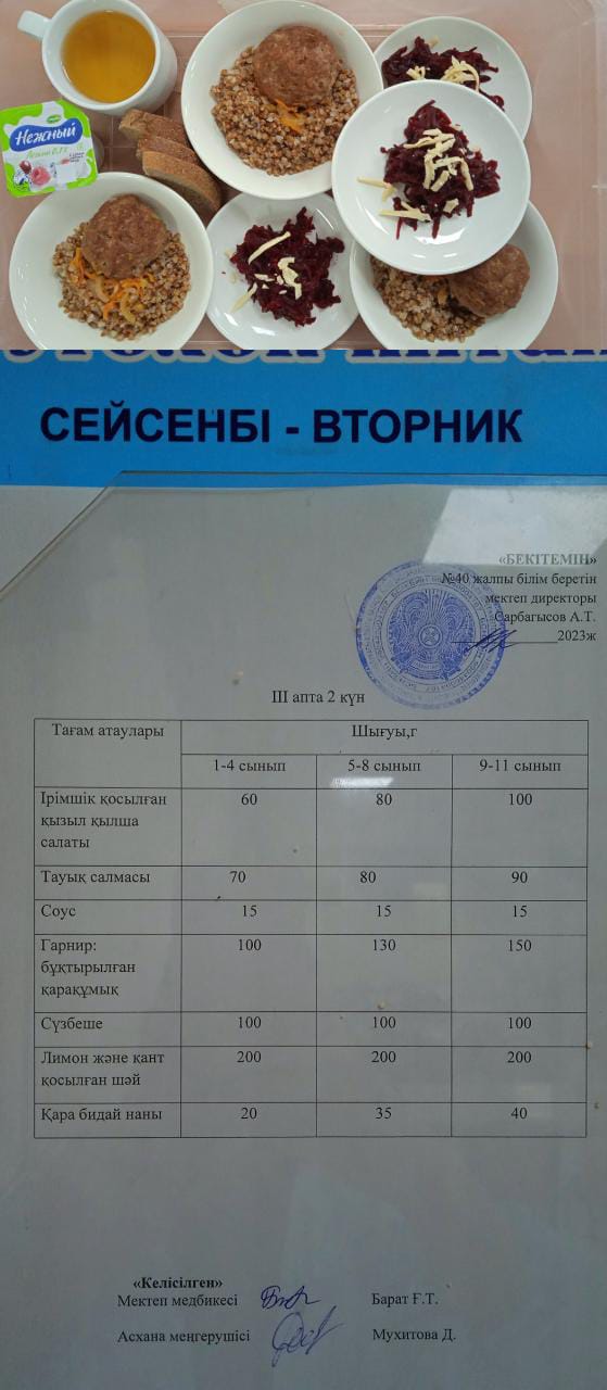 1 күндік ас мәзірі. ІІІ апта 2 күн.