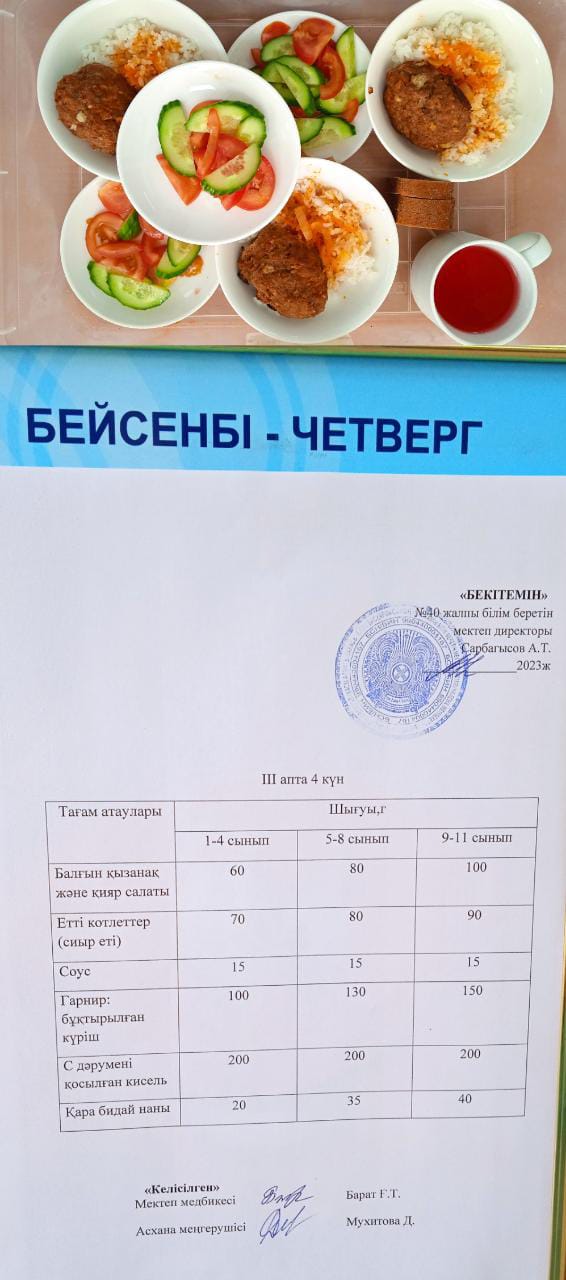 1 күндік ас мәзірі. ІІІ апта 4 күн