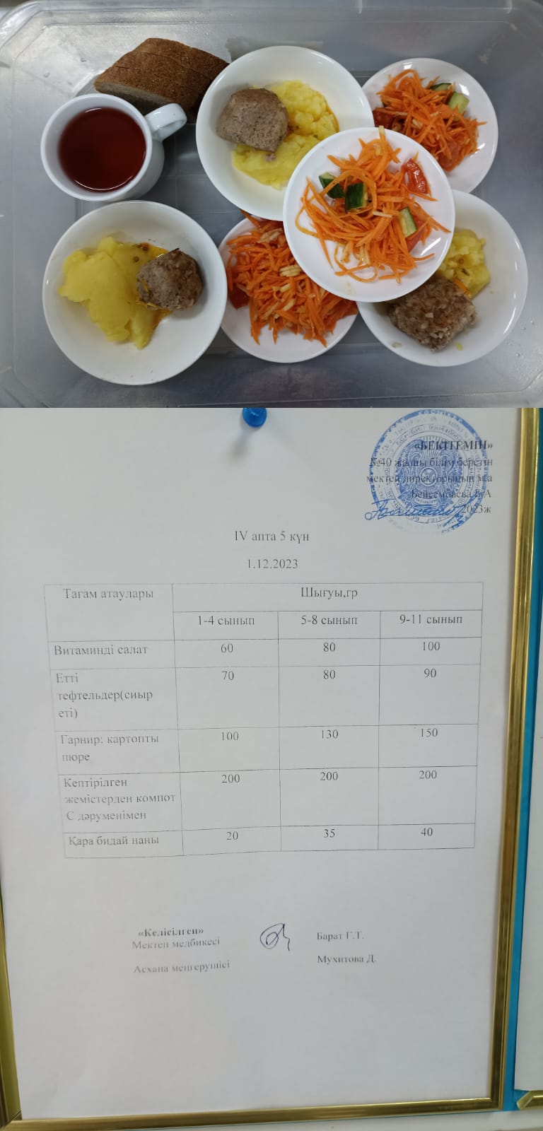 1 күндік ас мәзірі IV апта 4 күн