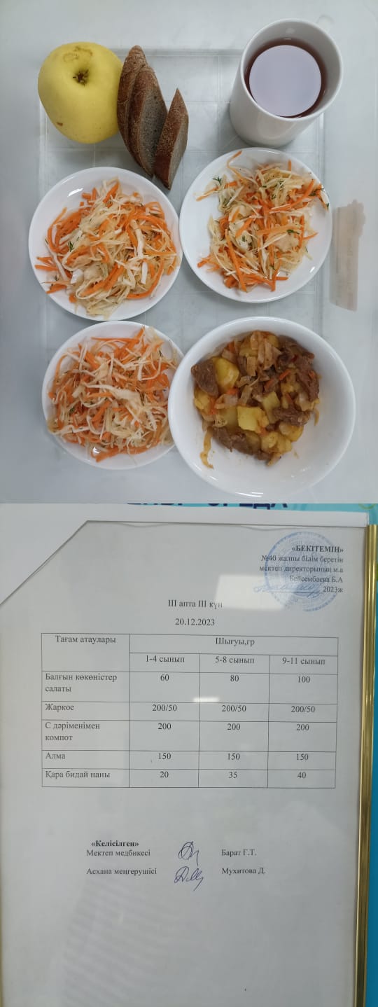 » 1күндік ас мәзірі III апта 3 күн