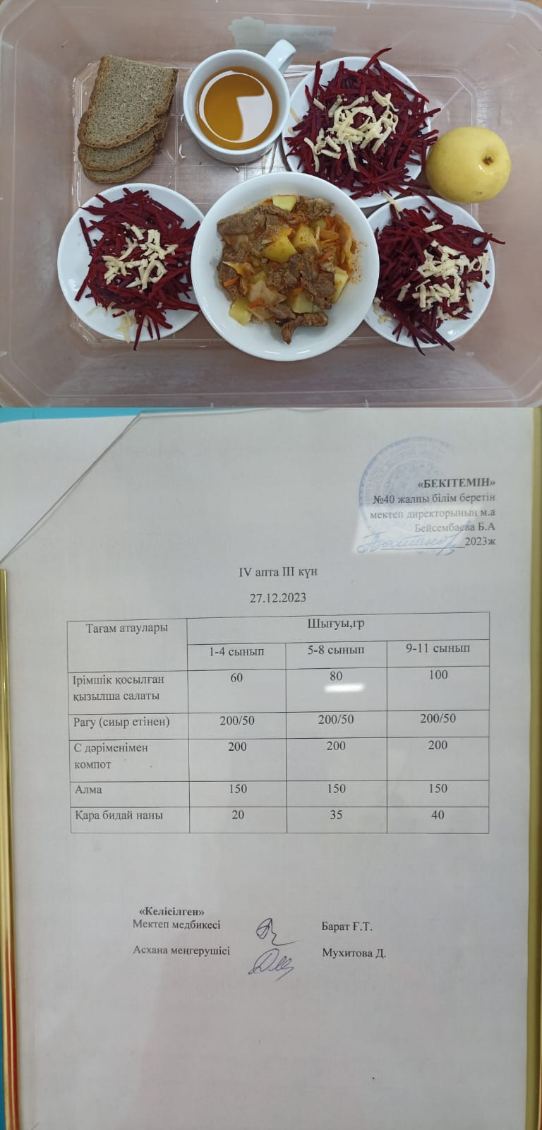 1-күндік ас мәзірі. ІІ апта 4 күн