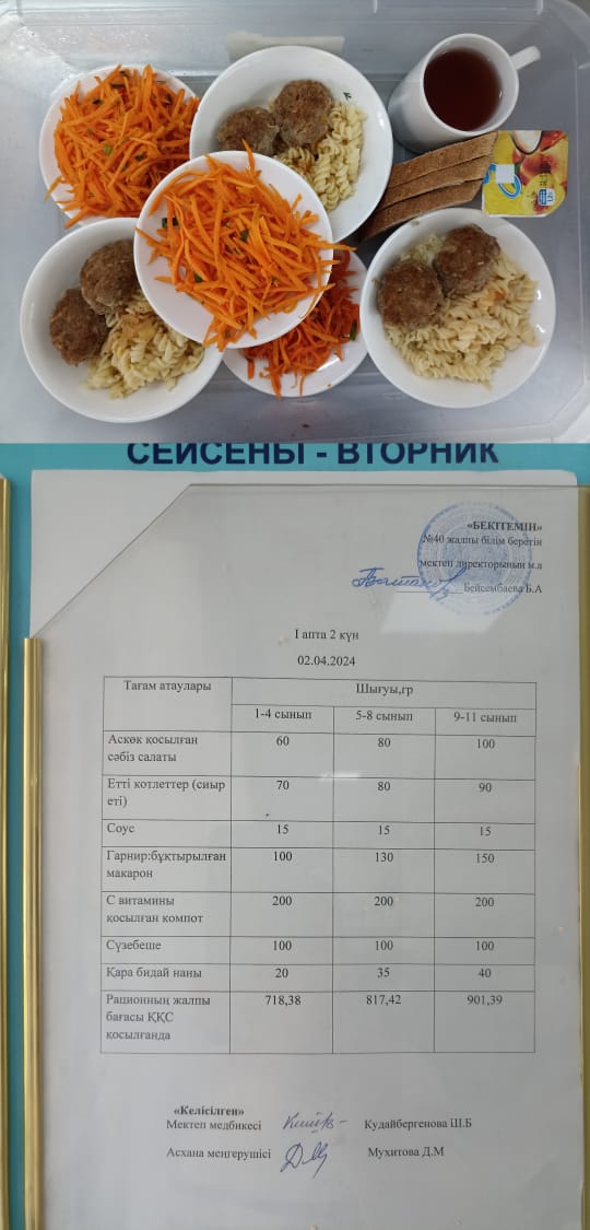 1 күндік ас мәзірі I апта 2 күн