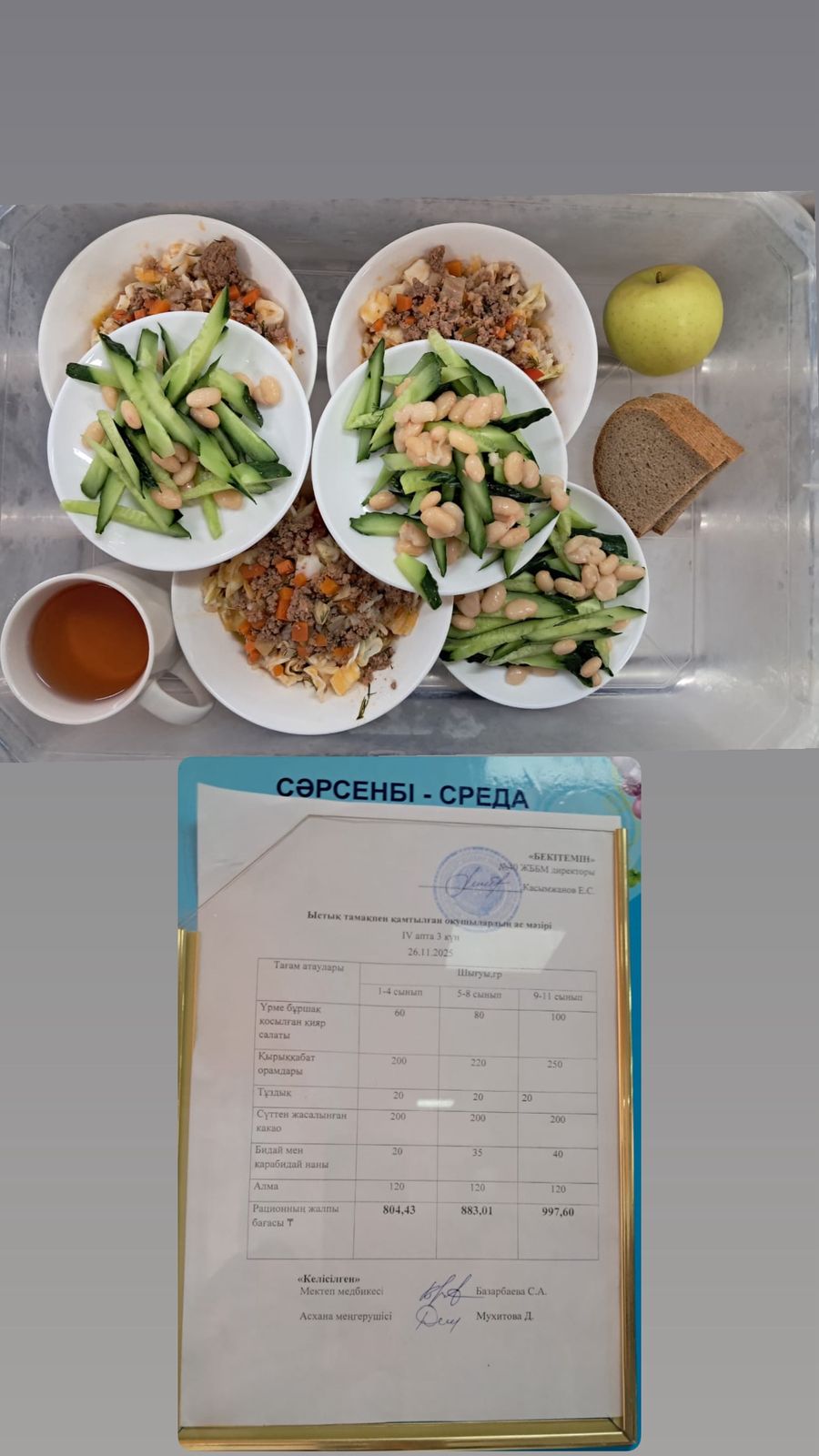 1 күндік ас мәзірі I апта 2 күн