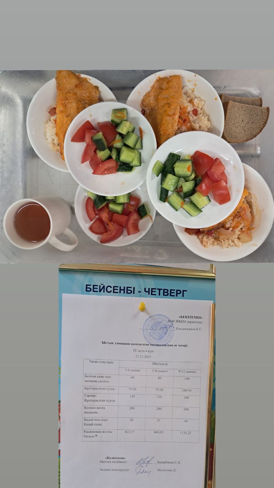 » 1 күндік ас мәзірі IV апта 4күн